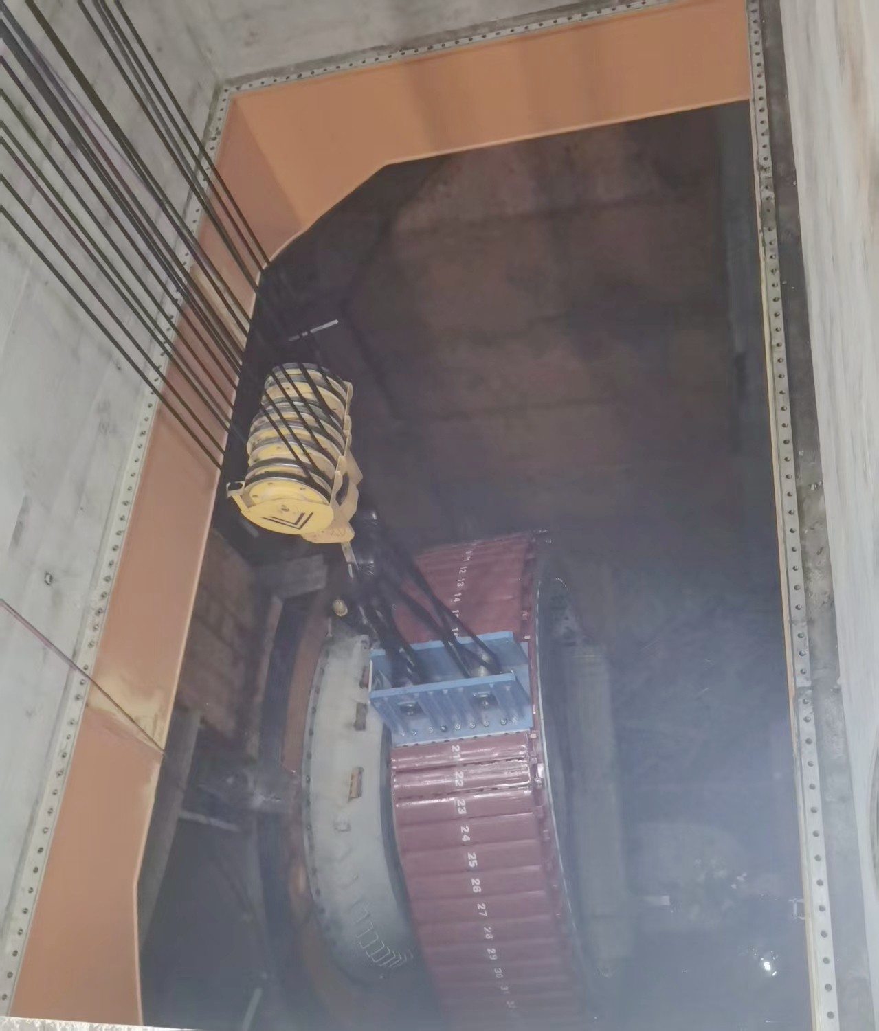 此次吊裝的6號機(jī)組轉(zhuǎn)子重量達(dá)230.5噸,直徑8.4米,是名副其實(shí)的“鋼鐵巨環(huán)”,其精準(zhǔn)就位對施工技術(shù)與安全保障提出極高要求。為確保吊裝萬無一失,所屬攀水電公司與參建各方做足了準(zhǔn)備,聯(lián)合開展多輪檢查,全面排查橋機(jī)、吊具等關(guān)鍵設(shè)備,同步組織技術(shù)交底和模擬演練,把安全措施落實(shí)到每個(gè)環(huán)節(jié)。吊裝過程中,這臺(tái)龐然大物在橋機(jī)手的精準(zhǔn)操控下平穩(wěn)起吊、緩緩移動(dòng),最終以毫米級精度穩(wěn)穩(wěn)落入機(jī)坑,與發(fā)電機(jī)大軸精準(zhǔn)對接。全程監(jiān)測數(shù)據(jù)顯示所有參數(shù)均符合設(shè)計(jì)標(biāo)準(zhǔn),本次吊裝任務(wù)圓滿完成。