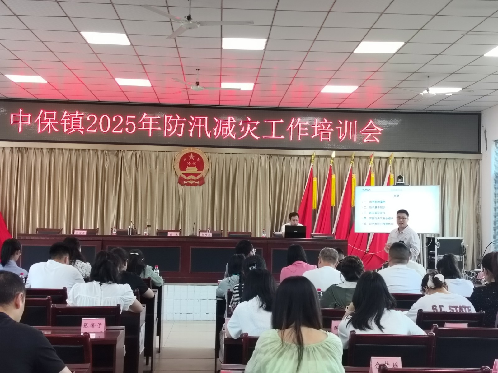 培訓(xùn)活動在中保鎮(zhèn)政府會議室舉行,此次活動吸引了中保鎮(zhèn)政府工作人員、應(yīng)急救援隊員、村社區(qū)干部及群眾代表等共計130余人參與。來自百花灘電廠黨支部的黨員吉超擔(dān)任此次培訓(xùn)的主講人。吉超同志憑借豐富的專業(yè)知識和實踐經(jīng)驗,圍繞山洪避險案例、防汛基本知識、防災(zāi)減災(zāi)宣傳、災(zāi)害性天氣安全提示、百花灘電廠泄洪預(yù)警機制等五個方面,進行了深入淺出的講解。通過此次培訓(xùn),中保鎮(zhèn)各級部門和社會各界人士的防災(zāi)減災(zāi)意識得到了顯著增強,對防汛等災(zāi)害防范工作有了更深入的認識和理解。同時,進一步強化了百花灘電廠與中保鎮(zhèn)政府的企地合作關(guān)系,為今后共同應(yīng)對各類災(zāi)害風(fēng)險、保障人民群眾生命財產(chǎn)安全奠定了堅實基礎(chǔ)。